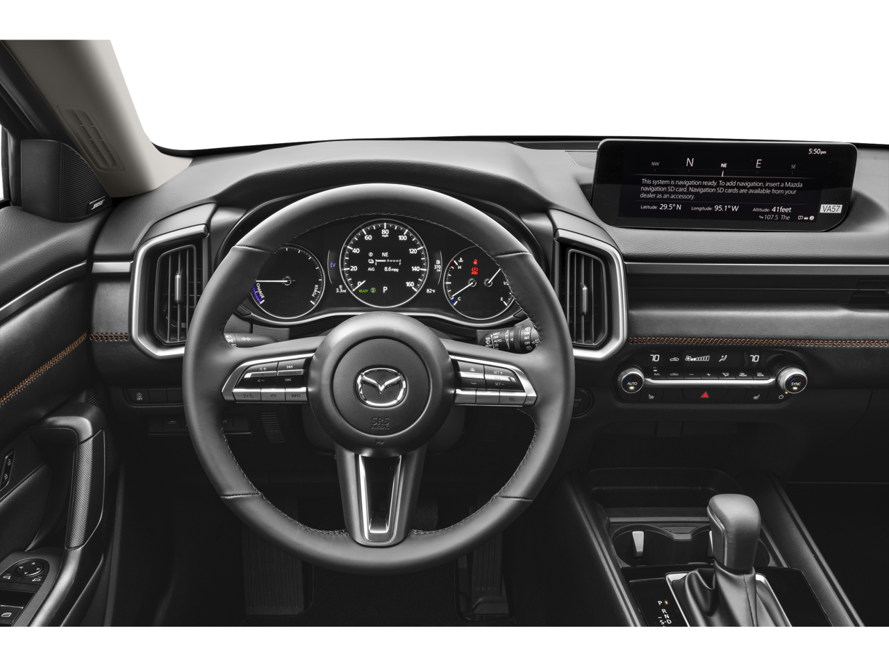 - AM/FM/HD Radio Bose 12-Speaker Audio Sound System -inc: 10.25" full-color center display w/touch screen for Apple CarPlay and Android Auto, Alexa built-in, audio menu voice-command, Bluetooth hands-free phone and audio capability, MAZDA CONNECT infotainment system w/in-vehicle Wi-Fi, navigation services including vehicle finder/send to car/map online update from PC, infotainment system voice command, multi-function commander control, radio broadcast data system program information, SiriusXM satellite radio w/3-month trial subscription (not available in AK and HI), 4 USB audio inputs and wireless Apple CarPlay and Android Auto integration
